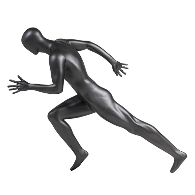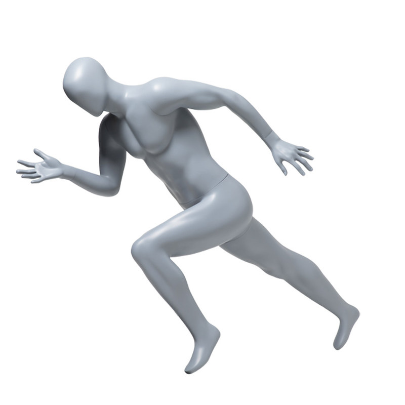 Dit mannequin toont een dynamische lopende houding, die een gevoel van beweging en activiteit in de winkel omgeving brengt.omdat het een element van realisme toevoegt en laat zien hoe de kleding eruit zou kunnen zien en bewegen op een actief lichaam.