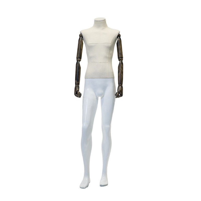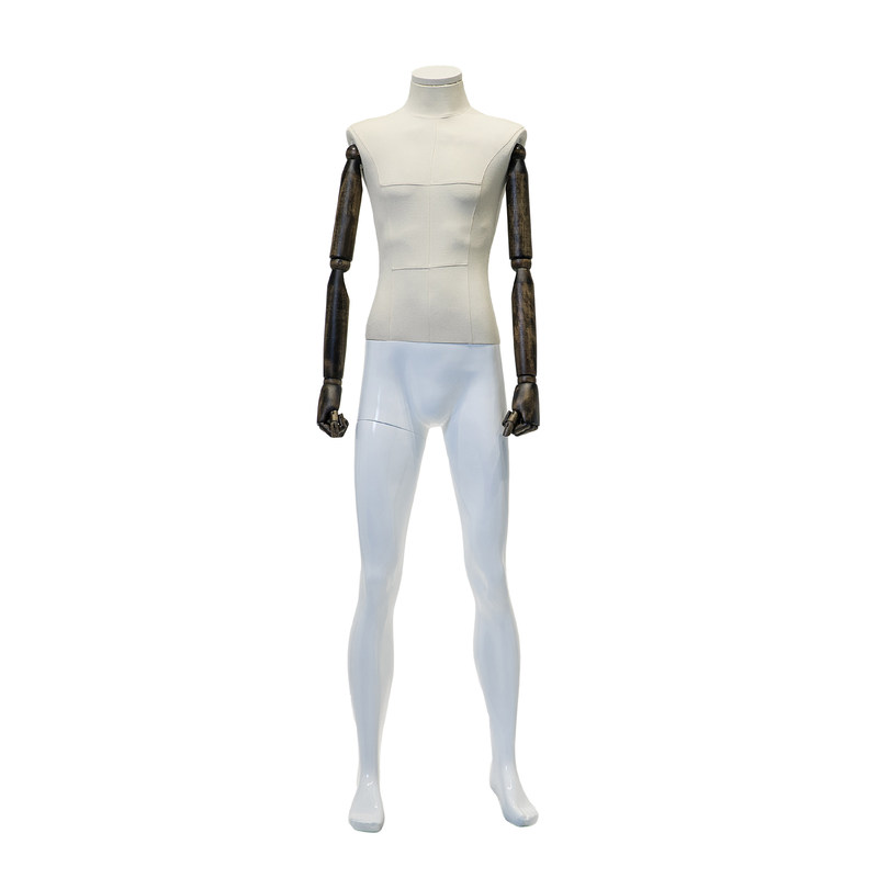 Mannequin met een full body half wikkeld doek en houten armen is gegarandeerd een visuele impact op uw klanten of bezoekers te maken.Het opvallende uiterlijk trekt de aandacht en creëert een brandpuntOf u nu op zoek bent naar een klassieke en verfijnde look of een hedendaags en edgy display,Dit mannequin is een veelzijdige keuze die de algehele esthetiek van uw ruimte zal verbeteren.