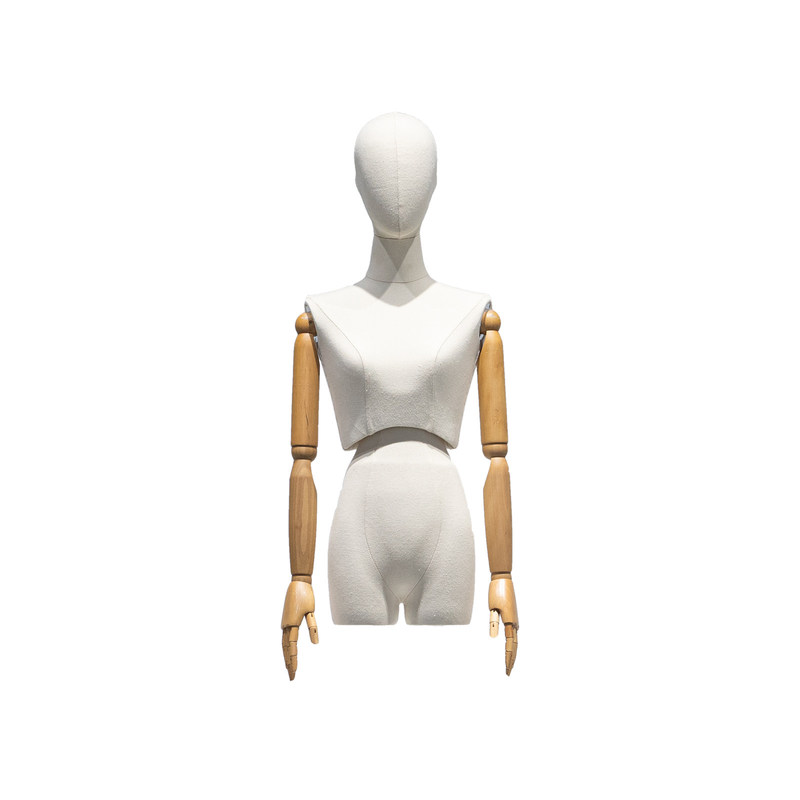 We zijn vereerd om dit vrouwelijke half-lichaam model met een verwrongen taille, hoofd en houten armen te presenteren.Het unieke ontwerp en het uitstekende vakmanschap zorgen voor een opvallende stijl voor uw mode- en merkadvertoning.Dit vrouwelijke half-lichaam model benadrukt de fusie van mode en kunst met zijn gedraaide middelontwerp.Dit ontwerpelement geeft het model een gevoel van dynamiek en vloeibaarheid en voegt dynamische en levendige effecten toe aan de getoonde kleding.Tegelijkertijd is het uitgerust met een hoofd en houten armen, waardoor het model meer proportioneel en realistisch is, waardoor het slijtageffect van de kleding beter kan worden belicht.